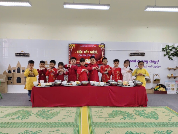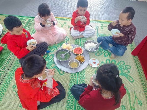 Bữa cơm tất niên tại Trường Mầm non Hồng Thái mang theo hơi ấm của những ngày cuối năm, nơi các bé cùng cô giáo quây quần bên mâm cơm đậm hương vị truyền thống của ngày tết cổ truyền. Từng món ăn giản dị mà thân thương gợi nhớ không khí Tết sum vầy, giúp các con cảm nhận nét đẹp văn hóa quê hương ngay từ những điều gần gũi nhất. Tiếng cười rộn ràng, ánh mắt háo hức và sự sẻ chia đã tạo nên một khoảnh khắc cuối năm thật trọn vẹn và ý nghĩa, ghi dấu những kỷ niệm hạnh phúc của tuổi thơ dưới mái trường MN Hồng Thái.