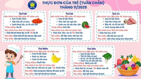THỰC ĐƠN CỦA TRẺ TUẦN CHẴN - THÁNG 11/2025 TRƯỜNG MẦM NON HỒNG THÁI