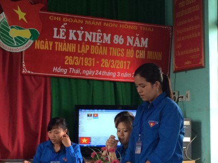 Chiều ngày 24/3/2017 chi đoàn trường mầm non Hồng Thái tổ chức lễ kỷ niệm 86 năm ngày thành lập đoàn TNCSHCM và Tổ chức ngày đoàn thanh niên hành động vì môi trường xanh sạch đẹp.