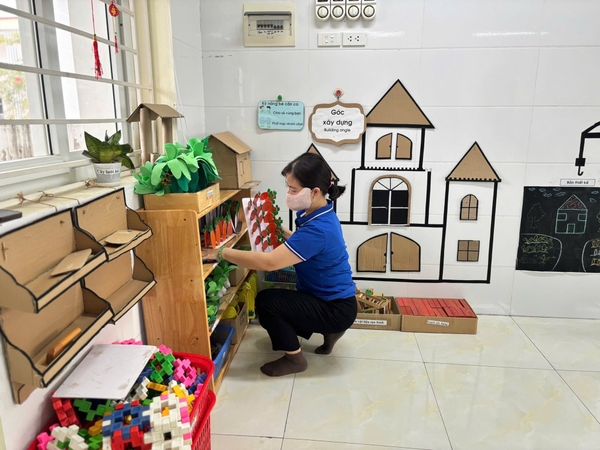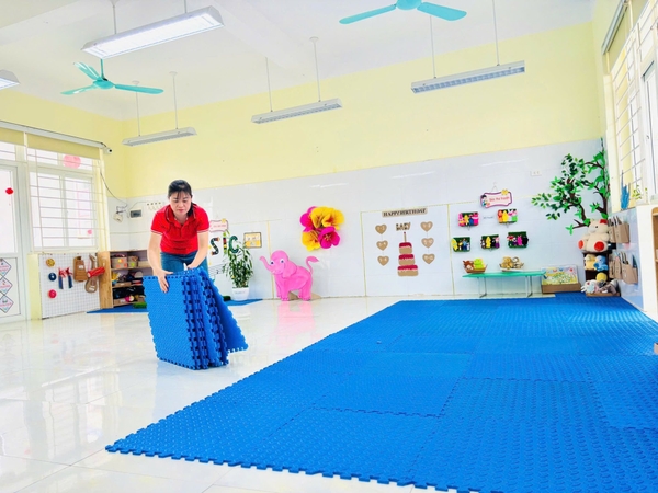 Khử khuẩn lớp học: Lau chùi cửa kính, làm sạch đồ dùng đồ chơi và sắp xếp lại các góc học tập ngăn nắp, sạch đẹp.