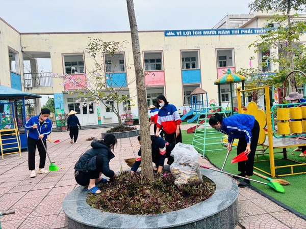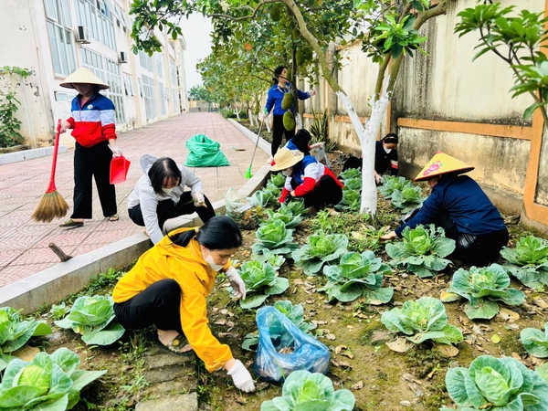 Hưởng ứng kế hoạch của địa phương, cán bộ, giáo viên, nhân viên nhà trường đã tham gia quét dọn, thu gom rác thải, vệ sinh khuôn viên trường học và các khu vực xung quanh. Hoạt động góp phần giữ gìn cảnh quan môi trường xanh - sạch - đẹp, đồng thời nâng cao ý thức trách nhiệm của mỗi cán bộ, giáo viên trong việc chung tay bảo vệ môi trường và xây dựng địa phương ngày càng văn minh, sạch đẹp.