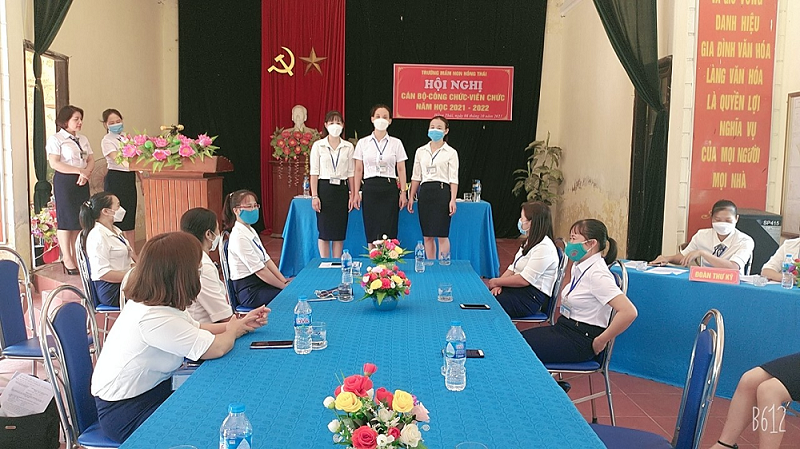 Hội nghị đã biểu quyết thống nhất, nhất trí với dự thảo nghị quyết Hội nghị CCVC,NLĐ trường MN Hồng Thái năm học 2021- 2022. Trường Mầm non Hồng Thái bước vào năm học mới với khí thế và quyết tâm cao hoàn thành tốt mọi nhiệm vụ chăm sóc, giáo dục trẻ.