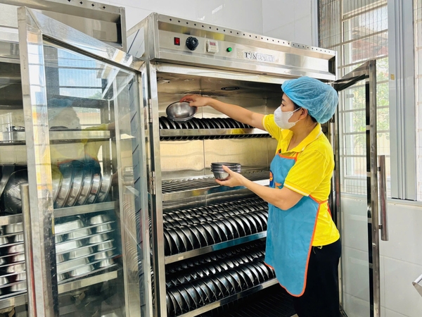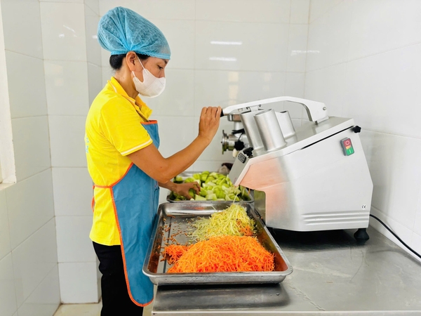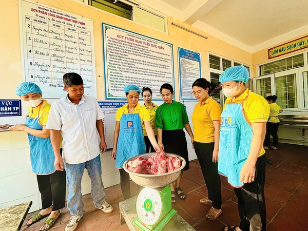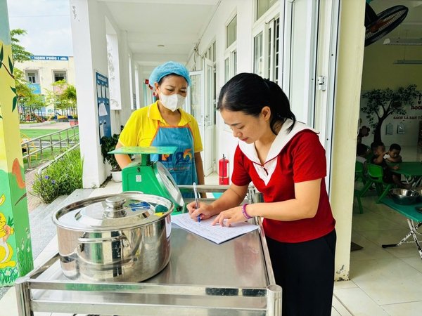 Qua khảo sát, nhân viên nuôi dưỡng thể hiện được tinh thần trách nhiệm cao, nắm vững quy trình chế biến bếp một chiều, thực hiện nghiêm quy định về vệ sinh an toàn thực phẩm. Bếp ăn được sắp xếp gọn gàng, sạch sẽ; khẩu phần ăn đảm bảo cân đối, phù hợp với độ tuổi của trẻ